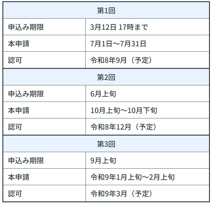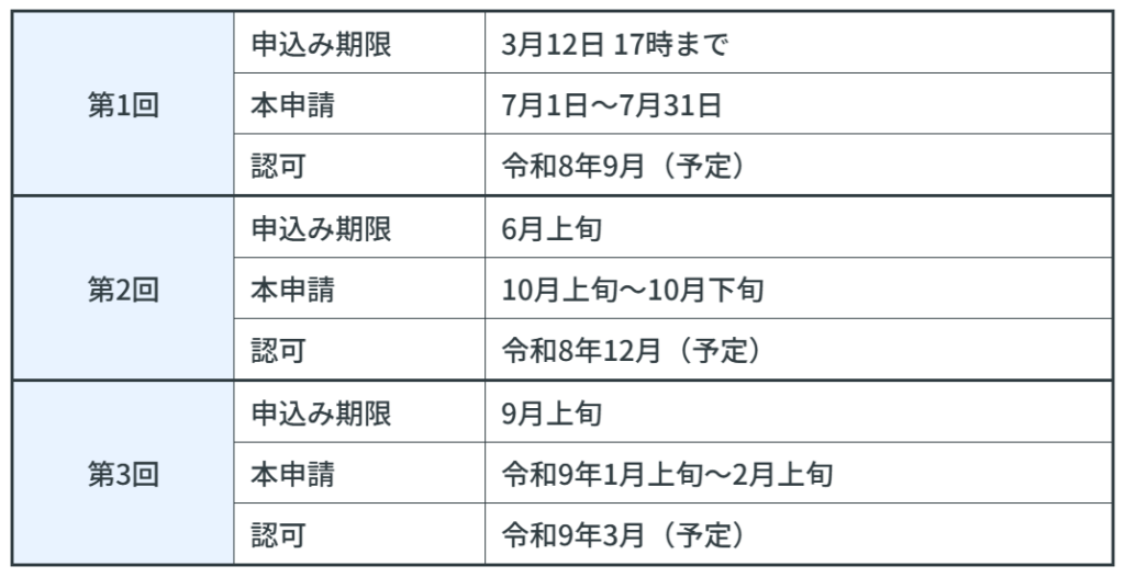 令和8年第1回申請希望の場合は、「令和8年3月12日(木)17時まで」に、