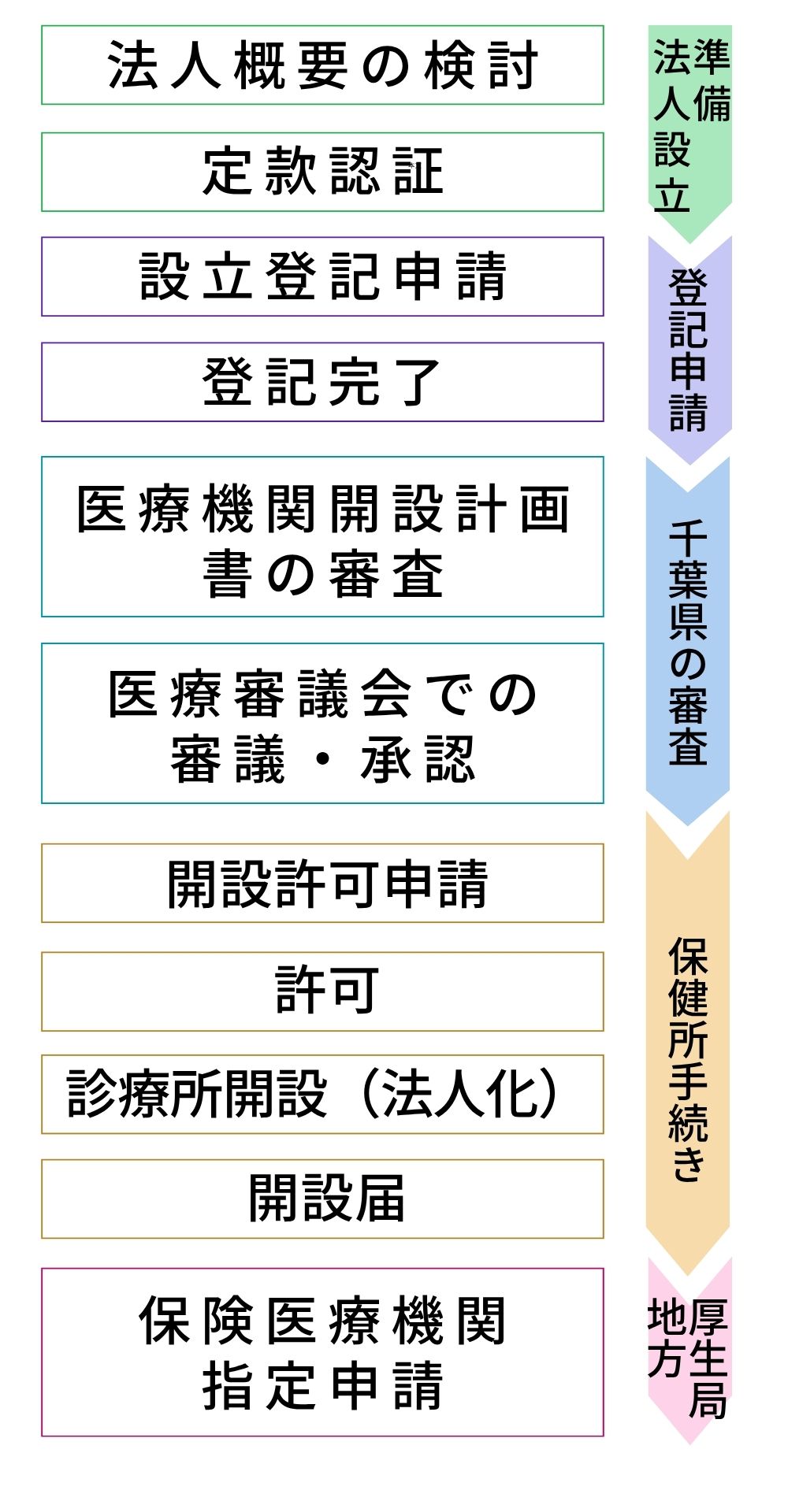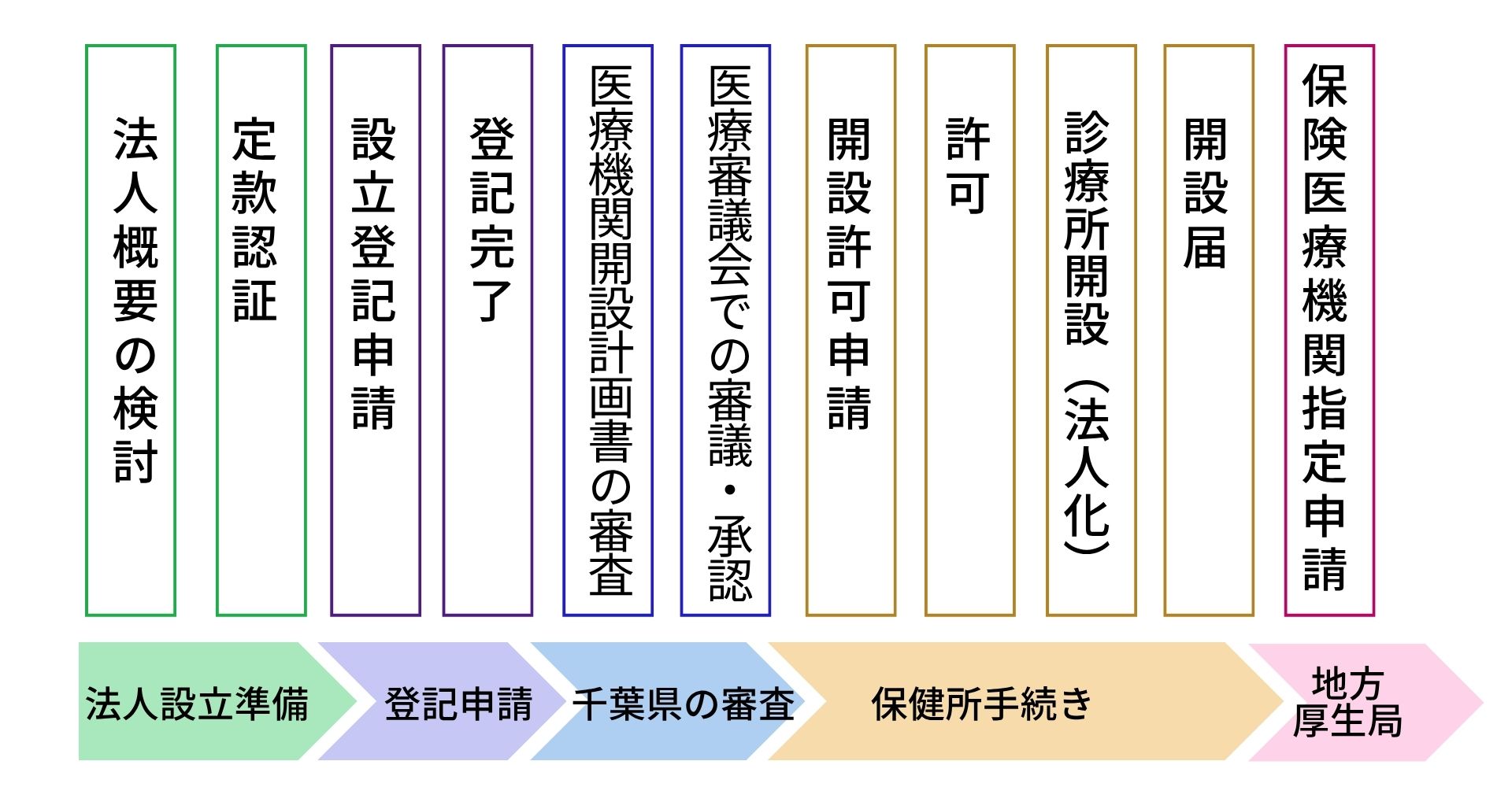 法人設立~診療所開設までの流れ(千葉県の場合)